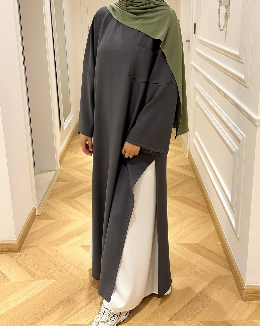 Découvrez cette robe longue en tissu d’hiver, pensée spécialement pour les femmes voilées à la recherche d’une tenue unique. Sa coupe oversize offre une liberté de mouvement optimale, tandis que les fentes latérales apportent volume et fluidité — idéales pour être portées avec une jupe, sous-robe ou un pantalon large. Le tissu d’hiver doux et structuré vous garde au chaud tout en maintenant un look chic et contemporain. Avec 4 couleur, manches longues, longueur maxi : elle se prête aussi bien à vos journées à la faculté qu’à une sortie ou un moment détente.
